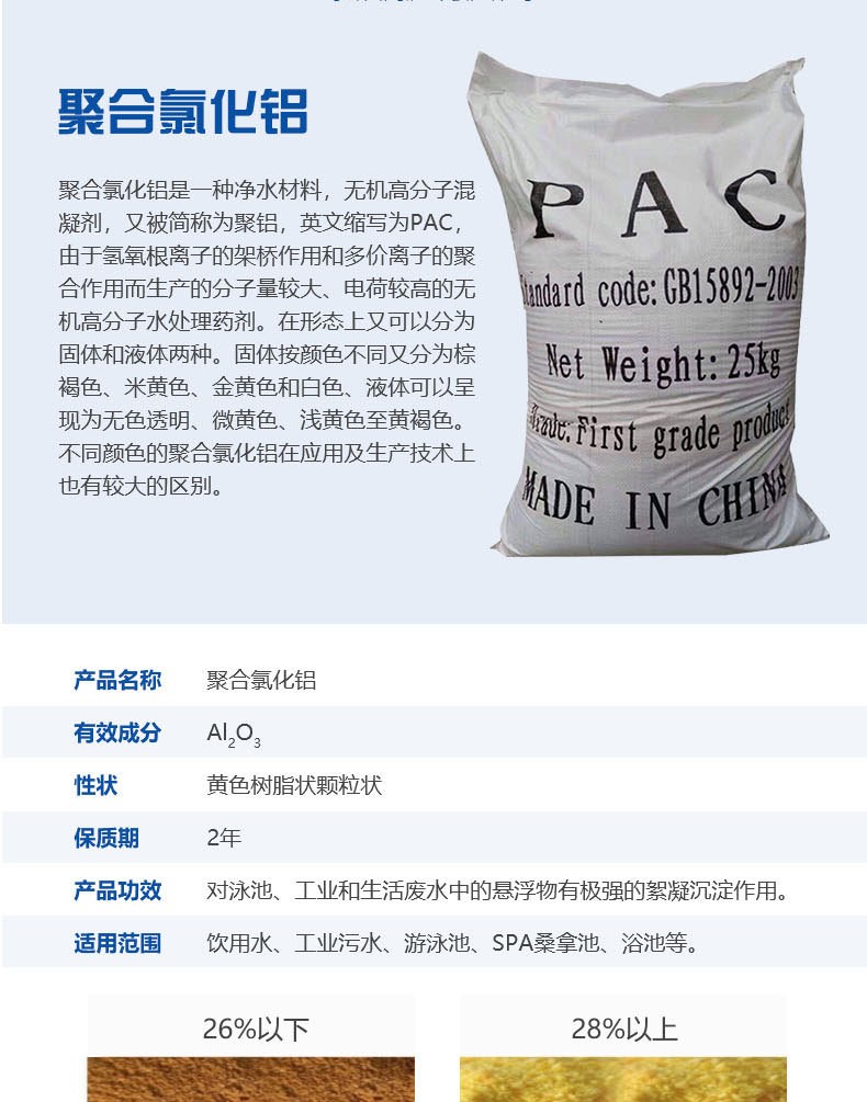 利用雙電層聚合氯化鋁加速沉淀 高分子物質(zhì),在吸附架橋形成的更長的污染物鏈條物質(zhì),利于沉淀,這類化學(xué)藥劑的吸附架橋作用對水中的細微懸浮顆粒進一步捕捉,無機鹽混凝劑聚合氯化鋁PAC對水中的膠體和細微的懸浮顆粒進行有效的去除。