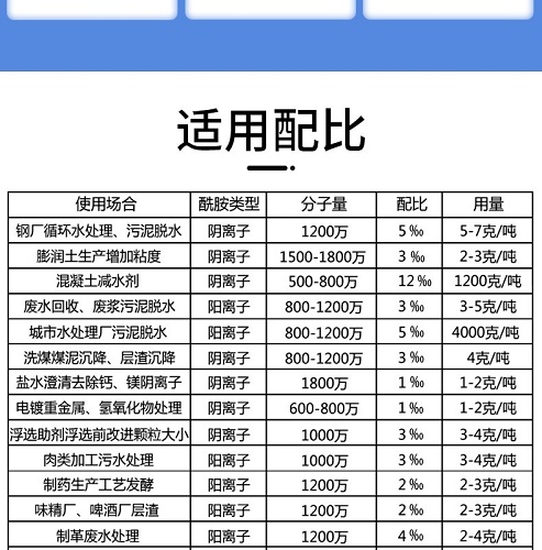 用于以江河作為水源的自來水廠的水處理絮凝劑,用量少,效果好,尤其是無機絮凝劑復(fù)配使用效果好。因為陽離子聚丙烯酰胺是陽離子單體和丙烯酰胺共聚而成的線型高分子聚合物,具有脫水 吸附 除濁 粘合等功能。更主要的是陽離子聚丙烯酰胺還可以常用到活化污泥法處理,具有脫水效率高的 性能。
