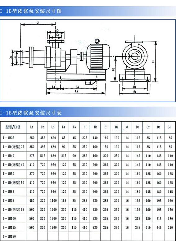 I-1B系列濃漿泵(結(jié)構(gòu)圖) I-1B系列濃漿泵(安裝尺寸):