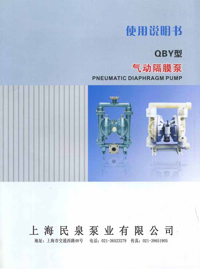 上海民泉泵業(yè)有限公司QBY型氣動(dòng)隔膜泵使用說(shuō)明書(shū)